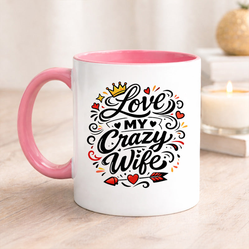 Here is a sweet and romantic gift that can make your wife say ?Aww?. This classic mug with a ?I love my crazy wife? print on the front side and ?Love the way you are? on the back side is just an adorable way to make your wife feel loved. You can gift this adorable mug on her birthday or Valentine?s day and bring a bright smile on her face.